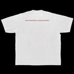 Screen printed on 6.5 oz Creme 1801 t-shirts. Knitted, cut, sewn, and dyed in Los Angeles, California.